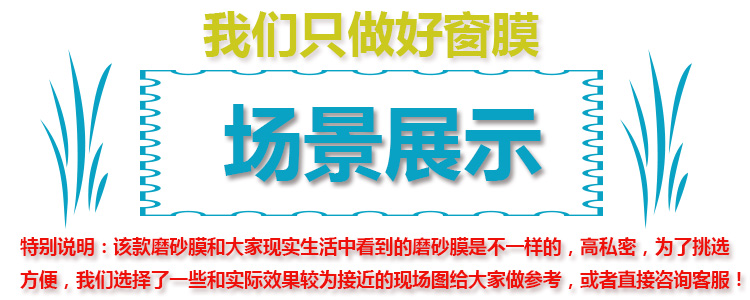 磨砂貼膜、多種漸變膜、防爆膜、隔熱防曬膜等